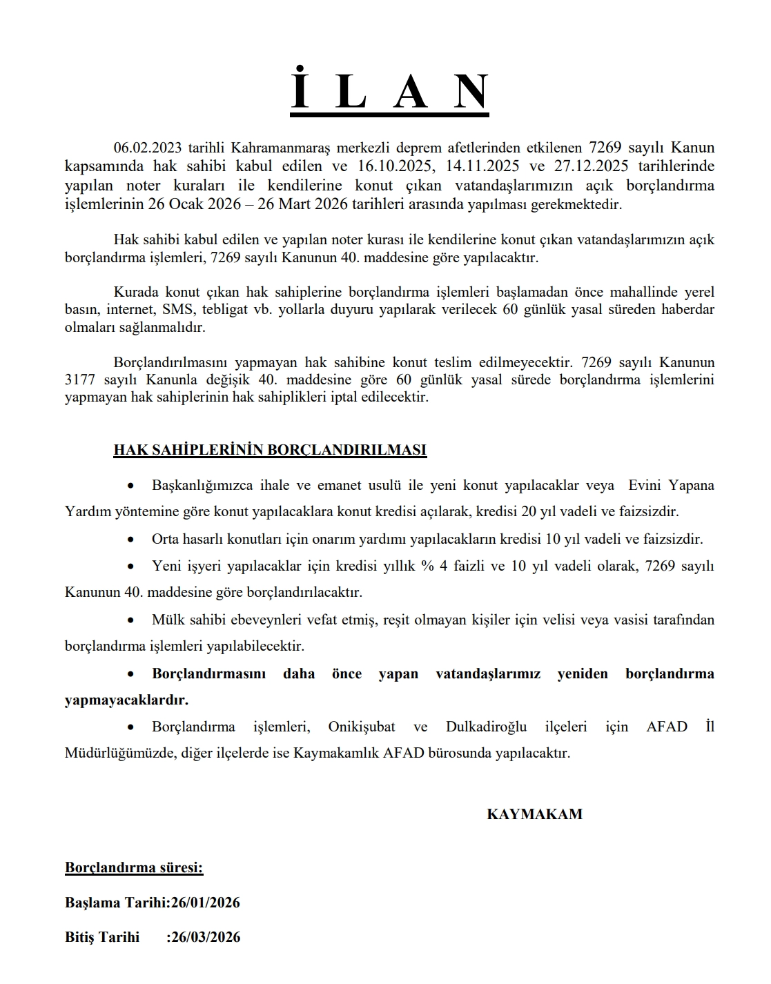 HAK SAHİPLERİNİN BORÇLANDIRILMASI